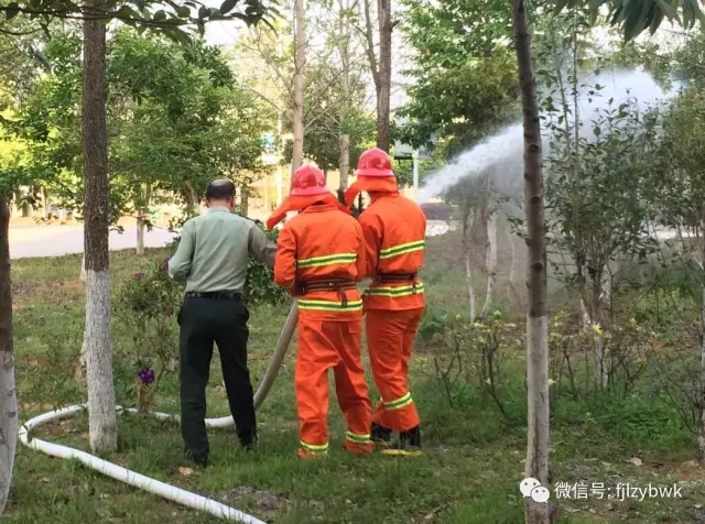 培训中,消防演练的情景为实训一旁边树林火灾,接到火警信息后,控制室值班员迅速核实火情,启动灭火处置程序,消防员按照“3分钟到场”要求赶赴现场处置,值班员需要紧急穿好放火护具,观察火情,并通过消火栓出水灭火。演练过程中,参战队员个个精神饱满,配合默契,以紧张有序、严谨认真的态度完成了此次演练活动。第一次演练两支队伍2分15秒左右完成任务,经过消防支队指导员的现场指导,第二次演练用时1分30秒完成。