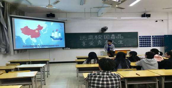 2.辅导员播放禁毒视频,让同学们更深刻的认识到毒品对于人的危害性。毒品损害健康,残害生命,对个人、家庭、社会的危害是巨大的。青少年正处于生理发育和心理发展的重要时期,心理防线薄弱,好奇心强、决定是非潜力差,容易成为毒品侵袭的人群。青少年一旦“染毒”,其身心健康受到的损害,远大于成人,更加体会到毒品对社会与家庭的侵害是多么严重;