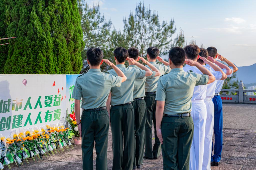 青山埋忠魂,山河念英魂。下午16时许,40余名参与祭扫的师生党员和青年志愿者怀着无比崇敬的心情到达南平市九峰山革命纪念碑,在巍然耸立的人民英雄纪念碑前举行了庄重肃立的悼念仪式。全体师生整齐排开,集体肃立,退伍军人代表苏睿、郑成梁、吴斌、吴铭义同志为革命烈士敬献花篮。在耸立的纪念碑前,全体师生着装整齐,表情庄重,脱帽默哀,表达对革命先烈的敬意与告慰。默哀后,信息工程系党总支副书记叶文美老师和团总支书记吴文杰老师分别为烈士整理挽联和宣读祭文,全体师生逐一为烈士献上师生共同制作的花束与千纸鹤,致敬英雄事迹,赓续先烈遗志,传承先烈精神。信息工程系专职组织员谢婉欣老师带领全体参加祭扫的师生党员,在人民英雄纪念碑前庄重地重温入党誓词,铮铮誓言响彻于青山之间。