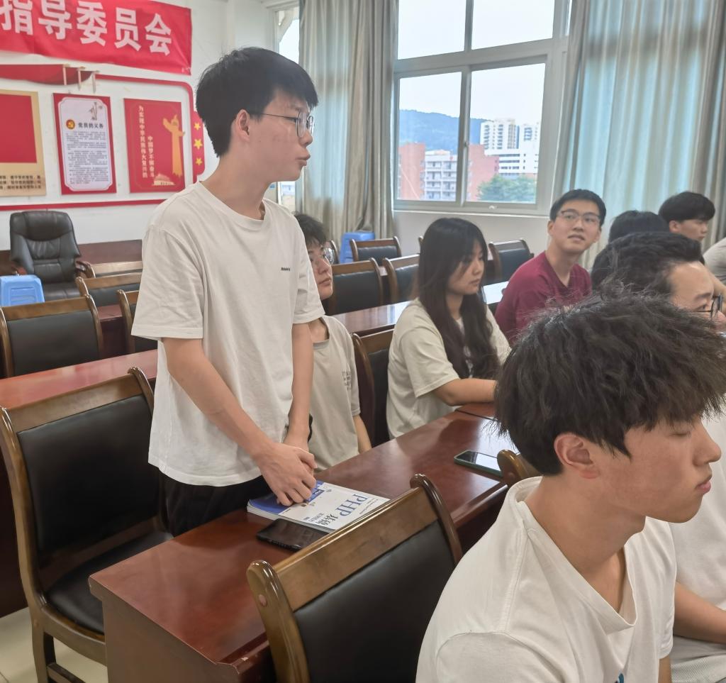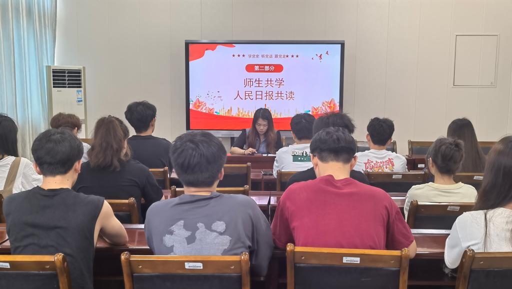 为深入开展学习贯彻习近平新时代中国特色社会主义思想主题教育,持续引导学生读党报党刊、学原文原著,推进“大思政课”建设,强化支部的样板示范作用,2023年6月16日,信息工程系学生第二党支部开展"学习强党性,阅读践初心"悦读伴我成长职教师生读党报活动。此次活动由支部书记陈雅佳主持,支部师生党员、学生入党积极分子参与。