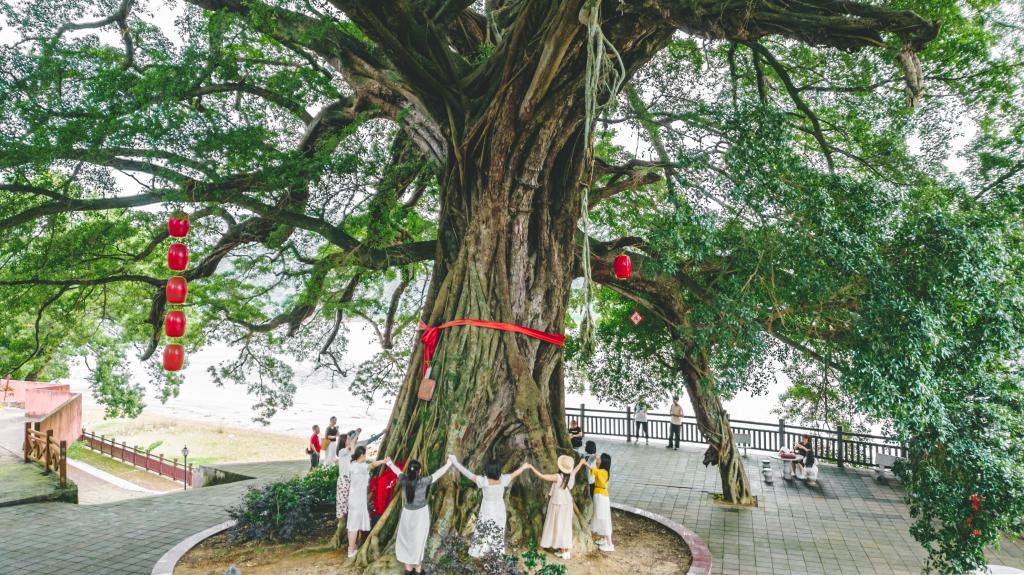 在洲头研学基地,大家围绕千年古榕,感受乡村景观文化特色,欣赏自然生态与人文景观相结合的美丽乡村画卷。