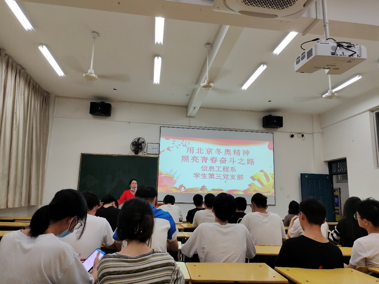 伟大的事业孕育伟大的精神,伟大的精神推进伟大的事业。为更好地弘扬北京冬奥精神,深刻领会“两个确立”的深远意义,学习习近平总书记在中国人民大学考察时的重要讲话精神,信息工程系学生第三党支部于4月28日晚在实训四407教室召开学习研讨交流会。本次学习会由信息工程系第三党支部书记刘克芹老师主持,支部学生党员、入党积极分子参加这次学习会。