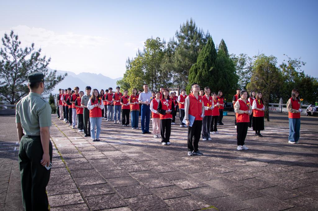 青山埋忠魂,山河念英魂。下午16时许,40余名参与祭扫的师生党员和青年志愿者怀着无比崇敬的心情到达南平市九峰山革命纪念碑,在巍然耸立的人民英雄纪念碑前举行了庄重肃立的悼念仪式。全体师生整齐排开,集体肃立,退伍军人代表苏睿、郑成梁、吴斌、吴铭义同志为革命烈士敬献花篮。在耸立的纪念碑前,全体师生着装整齐,表情庄重,脱帽默哀,表达对革命先烈的敬意与告慰。默哀后,信息工程系党总支副书记叶文美老师和团总支书记吴文杰老师分别为烈士整理挽联和宣读祭文,全体师生逐一为烈士献上师生共同制作的花束与千纸鹤,致敬英雄事迹,赓续先烈遗志,传承先烈精神。信息工程系专职组织员谢婉欣老师带领全体参加祭扫的师生党员,在人民英雄纪念碑前庄重地重温入党誓词,铮铮誓言响彻于青山之间。