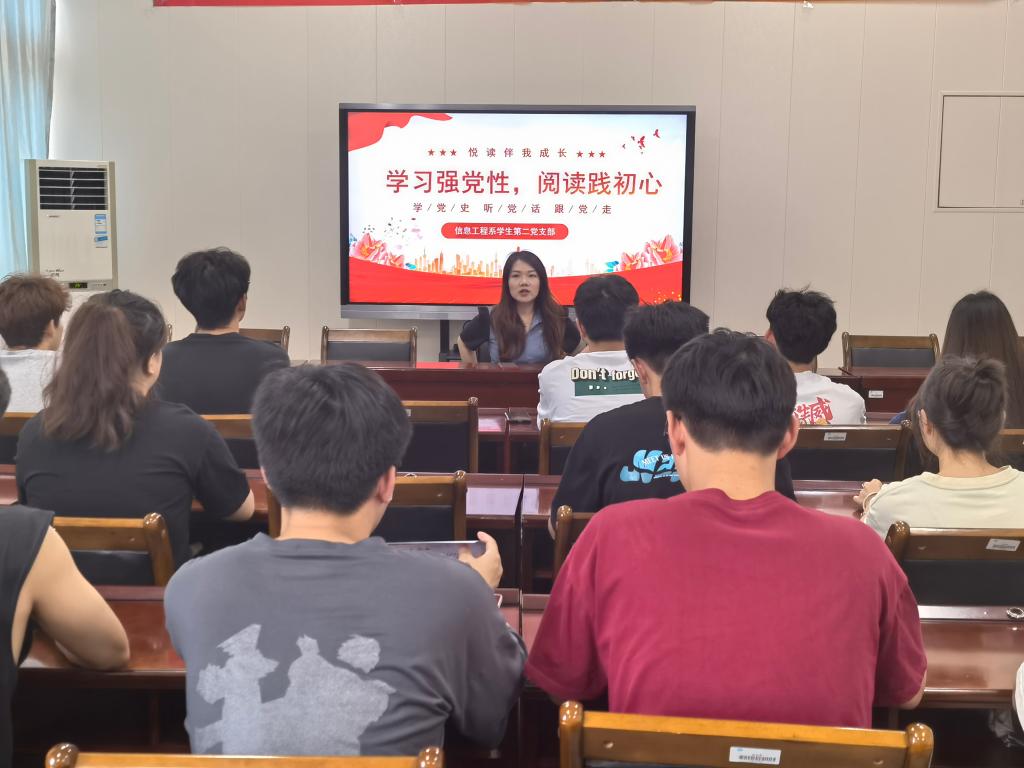 为深入开展学习贯彻习近平新时代中国特色社会主义思想主题教育,持续引导学生读党报党刊、学原文原著,推进“大思政课”建设,强化支部的样板示范作用,2023年6月16日,信息工程系学生第二党支部开展"学习强党性,阅读践初心"悦读伴我成长职教师生读党报活动。此次活动由支部书记陈雅佳主持,支部师生党员、学生入党积极分子参与。