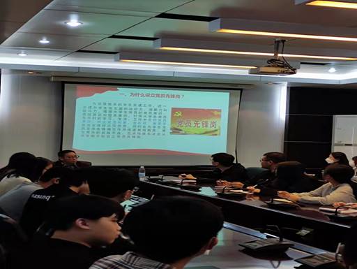 围绕为什么设立党员先锋岗这一主题,陈政书记分别从系部的党组织情况、设立党员先锋岗的目的和意义、党员先锋岗的工作运行机制等几方面进行了详细的介绍,让同学们对党员先锋岗的设置有了基本的了解。