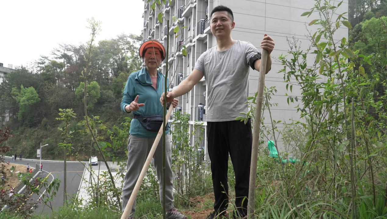 老师和同学们抡起锄头,挥舞着铁锹,每道工序、每个环节都一丝不苟,确保植一棵、活一棵,为天麟山增添一抹生机和活力。