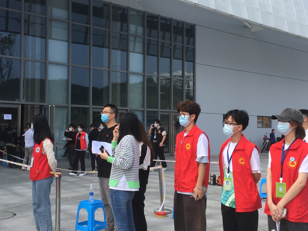 党员先锋队和志愿服务队在组织员罗勇老师的统一指导下,做好现场的秩序维护工作,时刻提醒学生保持一米安全间距,戴好医用口罩,做好个人防护,严格按照规定流程进行扫码预约、扫码认证和核酸检测采样,确保整个核酸检测工作有序、有效进行。