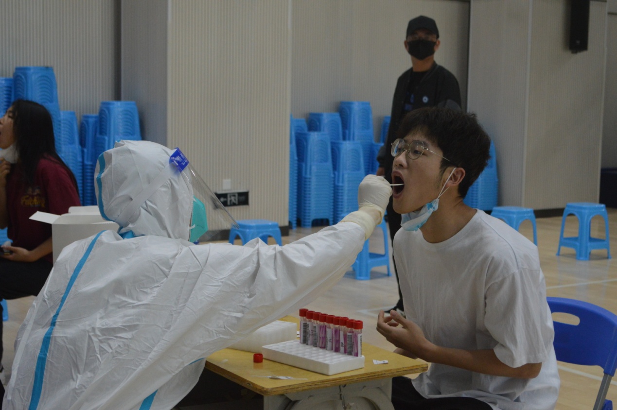 林学系党总支将责任层层落实到位,实行党总支书记统筹安排-学生科长现场协调-辅导员分区负责机制,组织全体学生在操场列队,分批有序展开核酸检测工作。