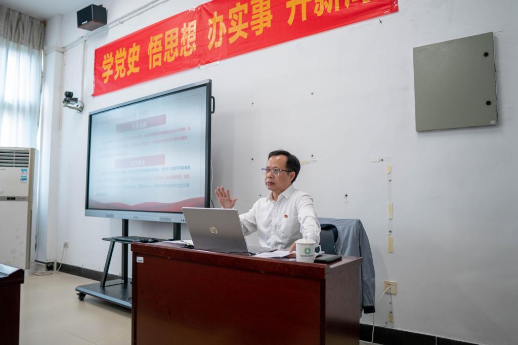 在全院上下深入学习贯彻党的二十大精神之际,为落实“领导干部要坚持带头学习、带头宣讲、带头贯彻”要求,推动党的二十大精神进校园、进课堂,入脑入心,切实把思想和行动统一到党的二十大精神上来,11月8日下午,院党委委员、院纪委书记林建斌深入信息工程系,为全系教师作题为《二十大报告中的新观点新论断新思想》专题辅导报告。报告会由信息工程系党总支书记罗志斌主持,院纪委办公室工作人员、信息工程系全体教师听取报告。