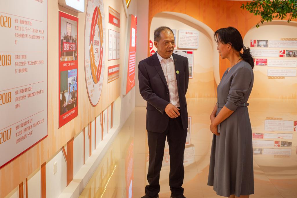 参观过后,院组织部(统战部)部长李霞向宁夏葡萄酒与防沙治沙职业技术学院组织宣传处副处长孙敏简要介绍了近年来学院党建工作方面的做法和经验,分享了全国样板支部创建的具体经验与做法。随后双方就深化高校党建“双创”工作开展交流探讨。