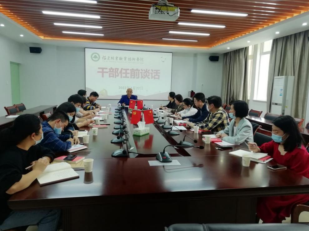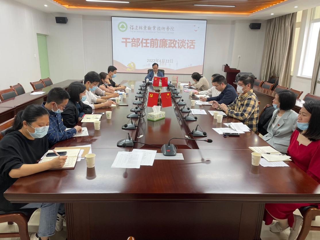 为进一步加强对学院新任干部的管理、教育和监督,增强新任领导干部廉洁自律意识,筑牢拒腐防变的思想道德防线,2022年4月22日上午,学院党委、纪委在五楼会议室对学院选聘任用的12名正科级干部开展任前集体谈话。