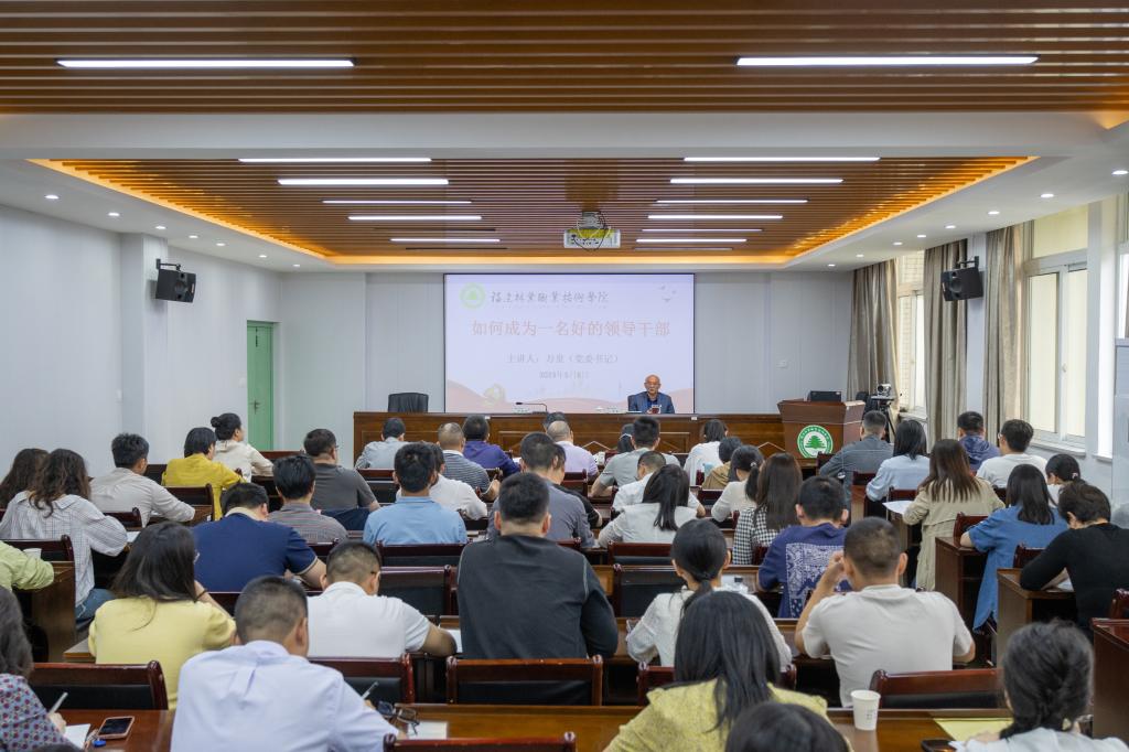 2023年5月8日,学院党委书记万泉为2023年青年干部培训班学员作专题讲座,学院党委副书记严绍裕、党委委员、组织部(统战部)部长李霞参加讲座。