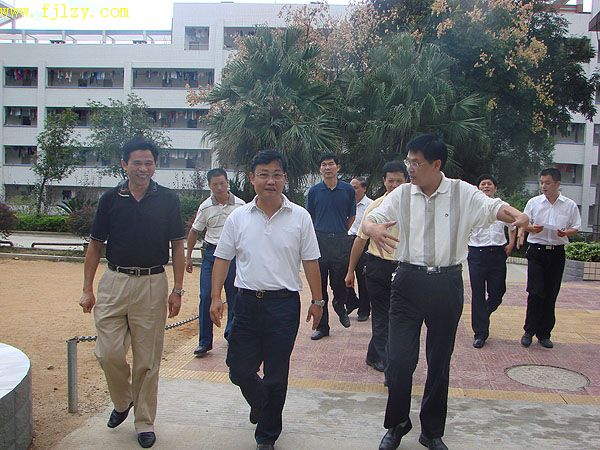 考察校园建设(左起学院党委书记徐志荣、副厅长林少霖、院长李宝银)