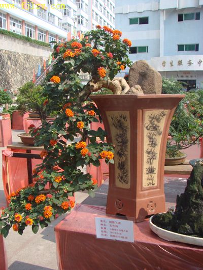 本届学生花卉盆景作品展由我院园林绿化中心、园林0608班、园林0303班、园林0505班、园林0506班、园林0609班、会计0507班、生物0603班共同主办,共展出各种花卉20多种6000多盆以及山水盆景、树桩盆景、微型盆景200多盆。(麒生 闵正秀)