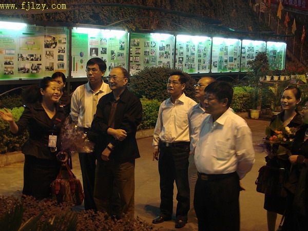 专家组组长朱传礼(右二)、林业厅厅长黄建兴(右一)参观学生花卉展