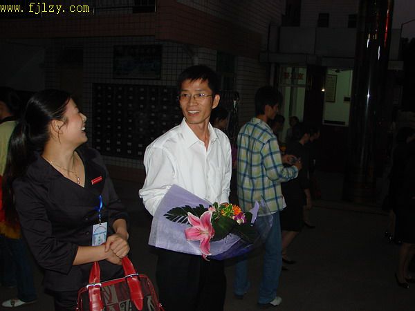 在学院大门口,专家组成员一下车,学生代表就为全体专家献花,在两排学生礼仪队的欢迎声中,专家们兴致勃勃地参观了学院第四届学生花卉展。