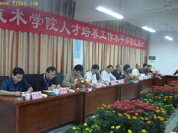 本网讯 正当举国上下共庆党的十七大胜利召开之际,我院迎来了教育部人才培养工作水平评估,今天上午10时整,我院人才培养工作水平评估汇报会在学院科教大楼多功能会议厅举行。教育部评估专家组全体成员、福建省林业厅党组书记、厅长黄建兴,省林业厅党组成员、副厅长林少霖,中共南平市委常委、教育工委书记、宣传部长张建光出席了汇报会,学院党政领导徐志荣、李宝银、刘明、苏孝同、章志勇、黄云鹏参加了汇报会。