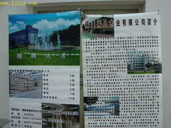 福建福人木业有限公司(原福州人造板厂)是我国改革开放初期由原林业部和福建省合资兴建的全国第一家生产中、高密度纤维板的大型木材综合利用企业,1986年竣工验收,现拥有资产10.06亿元,占地743亩。公司主要从事人造板及其深加工和相关产品的研发、生产、销售和原料林培育,是全国520户国家重点企业和福建省百家重点企业之一。企业现有员工700多人,各类专业技术人员占39%,其中享受国务院政府津贴专家3名、国家有突出贡献中青年专家1名、省优秀专家2名,高级工程师30多名,工程师100多名。