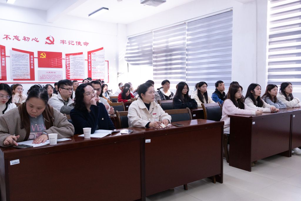 詹书记紧扣新闻发布会核心信息,从“十五五”规划的宏伟蓝图到自立自强的科技创新等多个维度,对全会精神进行了系统梳理和深入浅出的解读。詹书记强调,师生们要将全会精神与自身职责结合,教师党员需立足教学科研,为学院高质量发展添砖加瓦;学生们要坚定理想、锤炼本领,用青春书写时代的奋斗答卷。
