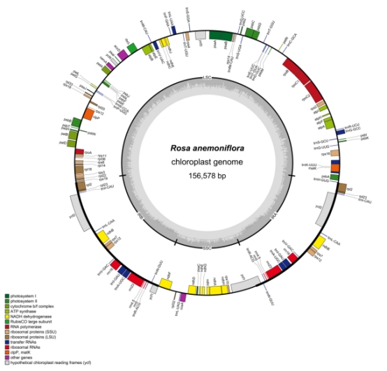 一、探明了银粉蔷薇叶绿体基因组特征及系统发育关系