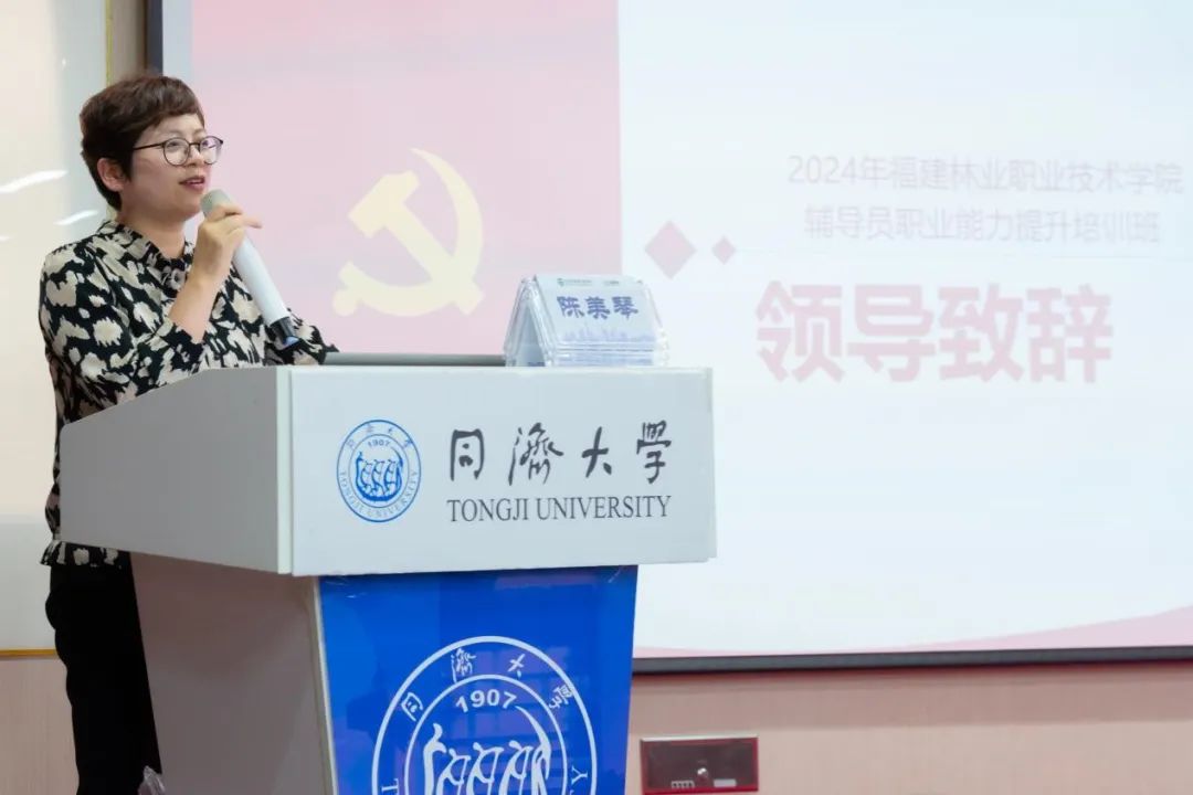 开班仪式上,上海景格职业技术培训学校校长陈美琴致欢迎辞。她指出大力推进职业教育改革,增强职业教育吸引力,加快构建现代职业教育体系,提高应用技能型人才培养的质量和培养层次,是新时代职业教育的使命和担当。高职院校辅导员作为学生成长的重要引路人,其综合能力直接影响人才培养质量。加强辅导员队伍培训,提升其政治、业务素养和管理能力,是推动职业教育高质量发展的重要举措。她希望通过培训班构建一个多元互动平台,加强交流,促进共同发展,希望全体参训学员能够交流互鉴中收获理念和思想启迪,并预祝本次辅导员职业能力提升培训班取得圆满成功。