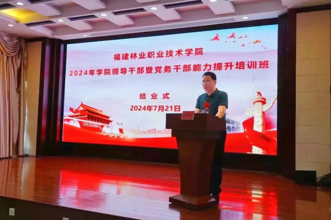 院党委书记陈建辉在结业仪式上作总结讲话。他指出,此次专题培训是一次理论的升华,是一次精神洗礼,是一次党性的锤炼,更是一次能力的提升。专题教学系统深刻,受益匪浅;现场教学身临其境,催人奋进;同学交流互促互进,情真意切;教学保障周到细致,温馨暖心。培训取得预期的效果,全体学员均受益匪浅。他希望全体学员在今后的工作生活中,深刻感悟精神伟力,传承红色基因,赓续红色血脉,坚定理想信念,在习近平新时代中国特色社会主义思想指引下,不断强化思想淬炼、政治历练、实践锻炼,衷心拥护“两个确立”、忠诚践行“两个维护”,加强党纪学习,做到内化于心、外化于行,务实担当作为,把初心和使命落实到本职岗位上,在推进学院各项事业发展实践中展现担当作为。