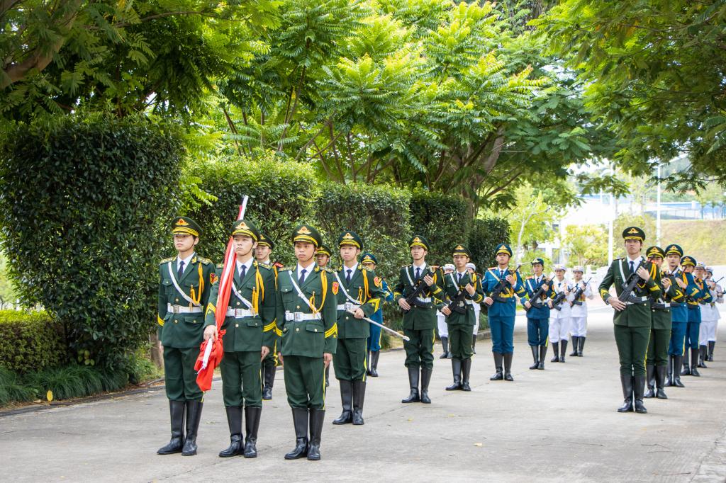 2024年10月1日清晨,学院在江南校区举行升旗仪式。激昂的国歌奏响,国旗护卫队整齐划一。伴随着国歌激昂的旋律,全体师生早已心潮澎湃,以饱满的热情,在庄严的国旗之下高声向祖国告白:“我爱您,祖国!”。