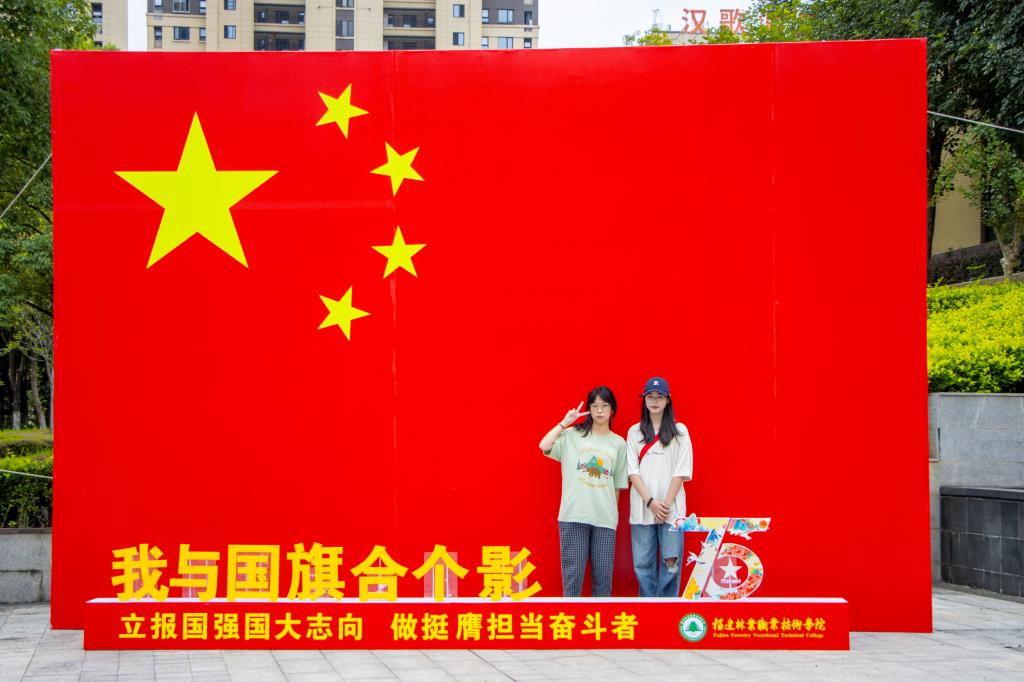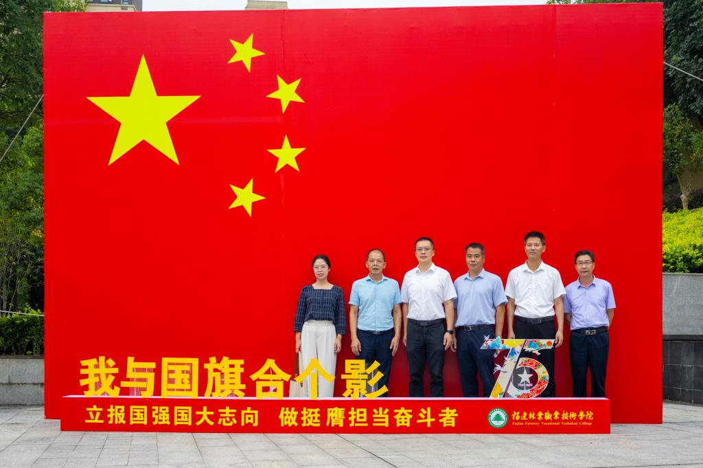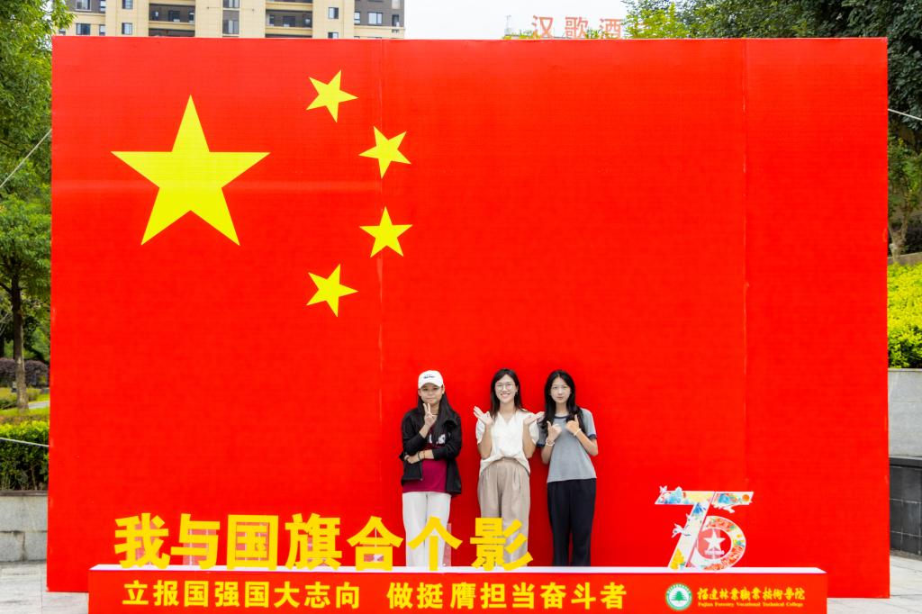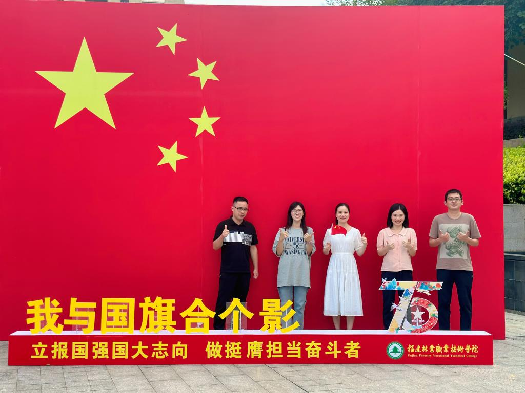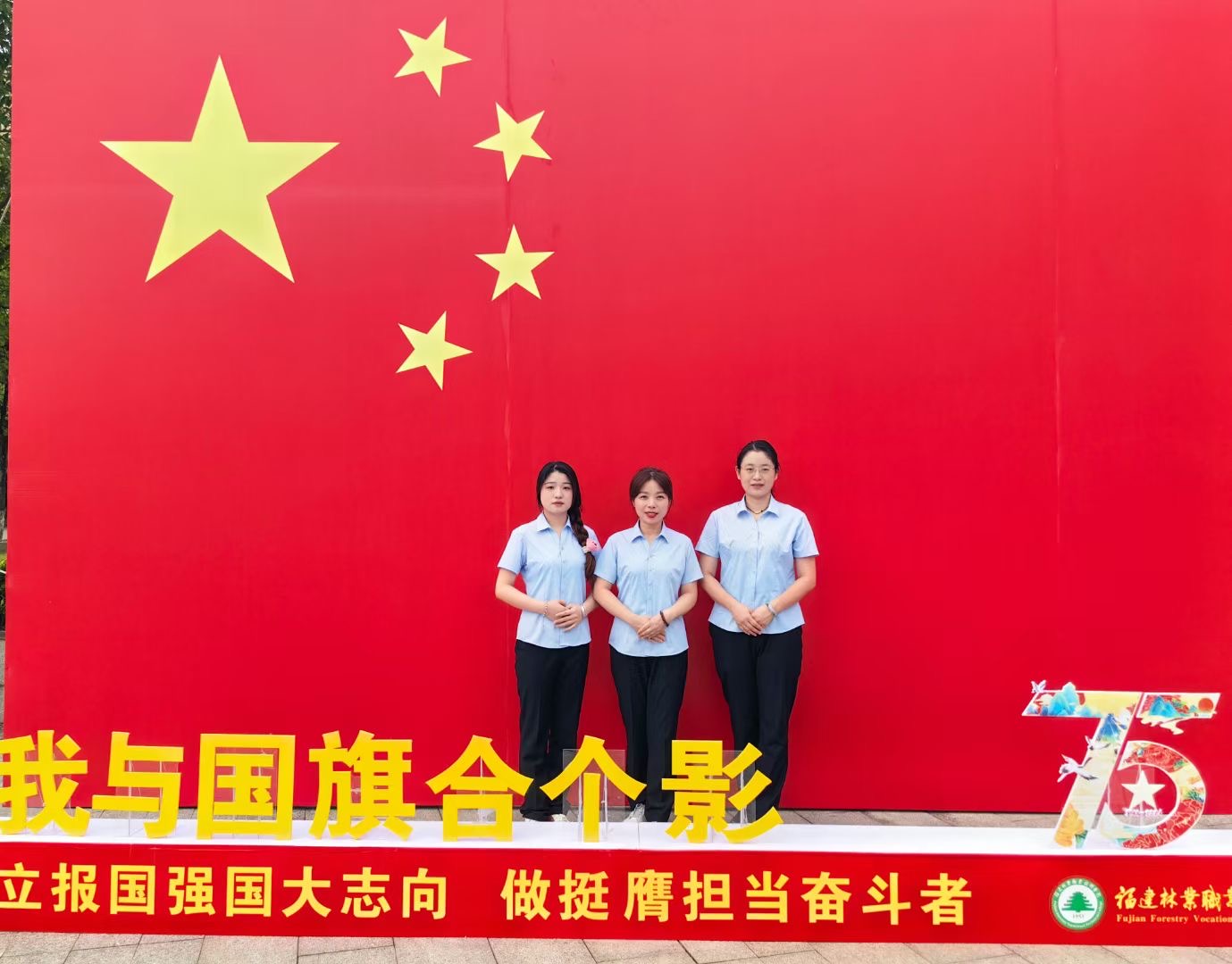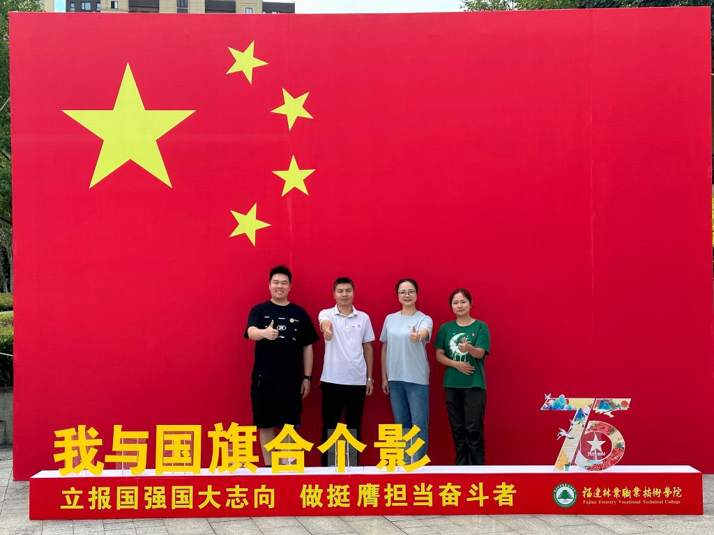 岁月长河波澜壮阔,伟大祖国繁荣昌盛。七十五载风雨兼程,书写了壮丽篇章,中国红深深印在中华儿女的心中。为庆祝中华人民共和国成立75周年,学院早就把氛围感拉满,悬挂的红旗迎风招展,满目“中国红”准备迎接金秋十月的第一缕晨光。 林职师生纷纷与国旗同框合影,用简单、质朴的方式向祖国深情告白。