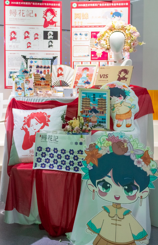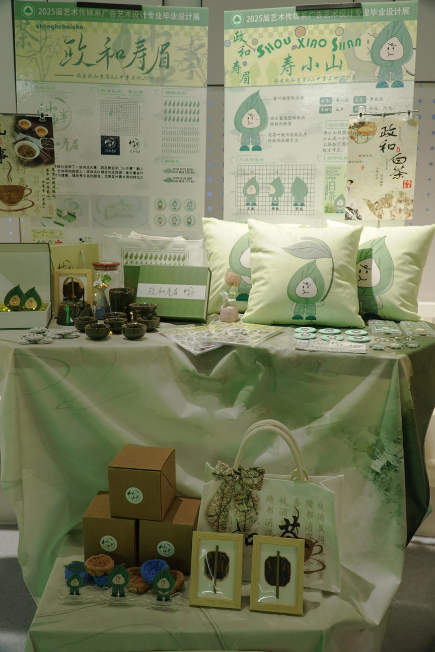 本网讯 兿·林空间,创意无限!2025届广告艺术设计毕业展于11月14日-12月16日在艺术楼展厅一楼举行。本次毕业展围绕校园文化、非遗以及农产品三个主题开展,由学生独立设计IP、LOGO。广告艺术设计的学子大展身手、各显神通,用他们最天马行空的想象力和独具匠心的创造力,让一件件创意作品的落地组成了毕业展的特别篇章。