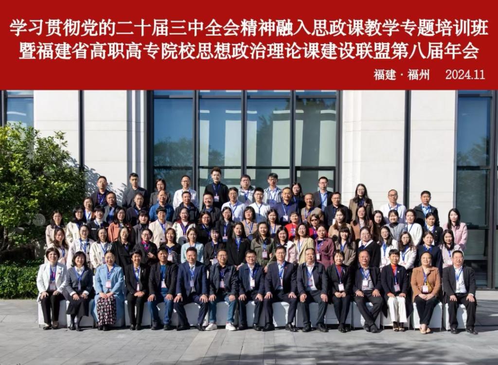 更新时间:2024/12/03 23:18本网讯 11月28日至30日,由福建省委教育工委指导、福建省高职高专院校思想政治理论课建设联盟主办、福州职业技术学院承办的“学习贯彻党的二十届三中全会精神融入思政课教学专题培训班”暨福建省高职高专院校思想政治理论课建设联盟第八届年会在福州召开。省内外专家和福建省高职高专院校领导、马克思主义学院(思政部)负责人及思政课骨干教师代表一百多人齐聚一堂,共谋联盟建设发展与思政课改革创新大计。会议包括理事换届选举、专家主旨报告、经验交流、教学展示和实践研修等环节。我院党委副书记严绍裕和马克思主义学院副院长陆晓莉受邀参会,陆晓莉在会上做经验交流分享。