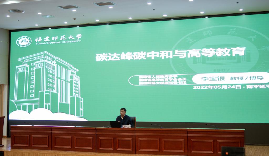 本网讯  为深入学习贯彻习近平生态文明思想,深刻认识实现碳达峰碳中和是贯彻新发展理念、构建新发展格局、推动高质量发展的内在要求,牢固树立绿水青山就是金山银山的理念,5月24日,院党委召开2022年第6次党委理论学习中心组学习(扩大)会议特邀福建省高等教育学会会长、福建师范大学原党委书记、福建省河湖健康研究中心主任、福建师范大学碳中和研究院副院长李宝银教授、博导作《碳达峰碳中和与高等教育》专题辅导报告。报告在江南校区图书馆报告厅举行,院党委书记万泉主持并提贯彻意见。