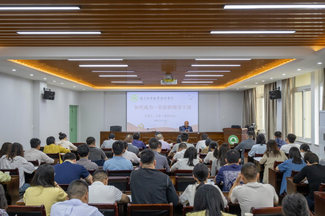 开班仪式结束后,学院党委书记万泉作了《如何成为一名好的领导干部》专题讲座。他从“什么是干部”、“如何成为一名好的干部”开展讲解,重点解读了习近平总书记提出的“好干部的’五条标准’”“年轻干部要提高‘七种能力’”,并结合自身工作经历和学院工作实际,对如何成长为一名好的领导干部提出了自己的看法和建议。讲座语言生动、逻辑清晰、指导性强,为受训学员带来了一堂精彩绝伦的讲座。学员们纷纷表示,要潜心学、认真悟,将学习成果转化为工作能力,投身学院建设。