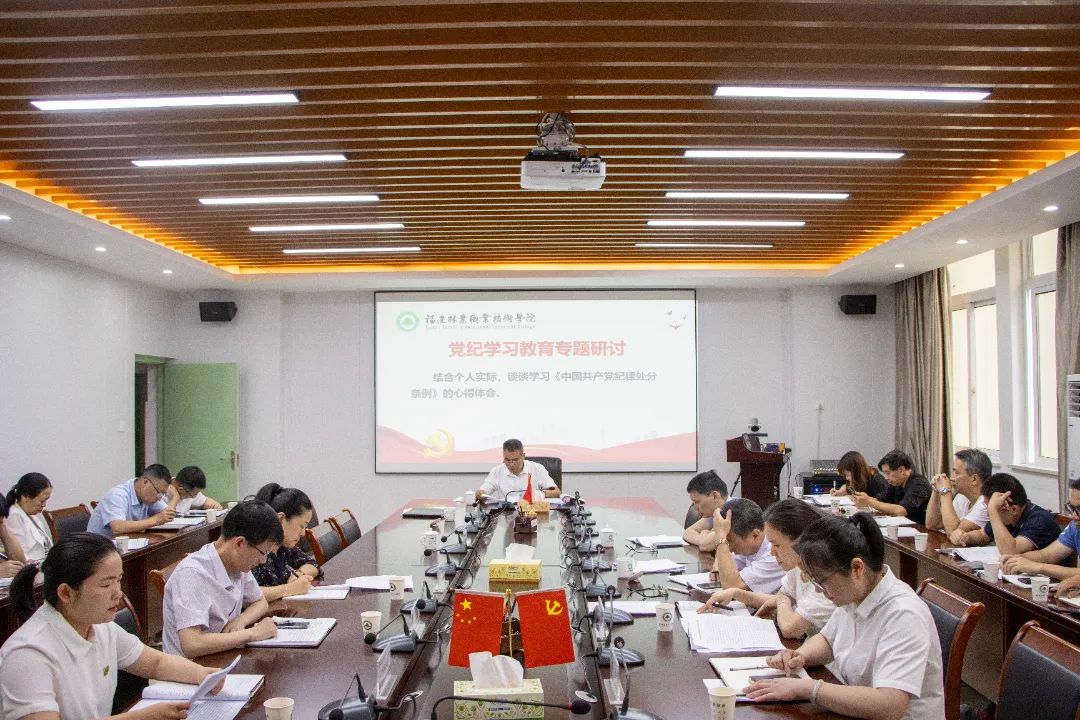 院党委书记陈建辉强调,学院各级党组织要深刻认识开展党纪学习教育是维护党的团结统一、确保全党令行禁止的必然要求,是解决对党规党纪不上心不了解不掌握问题、深入推进全面从严治党的重要举措。一要提高政治站位,发挥“关键少数”引领作用。学院党员领导干部要强化领导干部先学一步、学深一层,发挥领学、促学、督学作用,带头争做学习的表率。二要强化纪律意识,推动《条例》入脑入心。通过深化《条例》学习,做到时刻以党纪为边、以党规为界,真正使学习党纪过程成为增强纪律意识、提高党性修养的过程。三要紧扣主责主业,推动学习成果转化内化。要坚持学思用贯通、知信行统一,以学正风、以学促干,要把党纪学习教育与正在做的事结合起来,同贯彻落实教育部和省教育厅、完成本校本单位工作任务结合起来,着力推动各项工作再上新台阶。