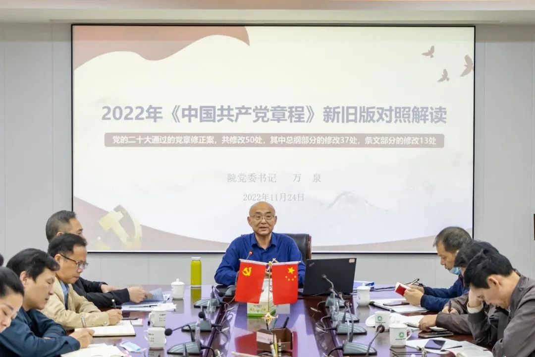 会上,万泉书记从为什么要修订《中国共产党章程》、《中国共产党章程》修订主要内容、《中国共产党章程》新旧版对照全文三个方面对党的二十大通过的《中国共产党章程(修正案)》作了详尽、细致地解读。会议要求,全院上下要深刻领会党的二十大修改党章的重大意义,深刻领悟党章的精神实质和核心要义。要抓好经常性常态化学习,将学习党章纳入“三会一课”重要学习内容,在全院党员中形成学习党章、遵守党章、贯彻党章、维护党章的良好局面。要把学习贯彻党章作为学习贯彻党的二十大精神的重要内容,把学习践行党章与做好当前和今后工作紧密联系起来,学深学透、细照笃行,坚定不移推动党的二十大精神落地见效。