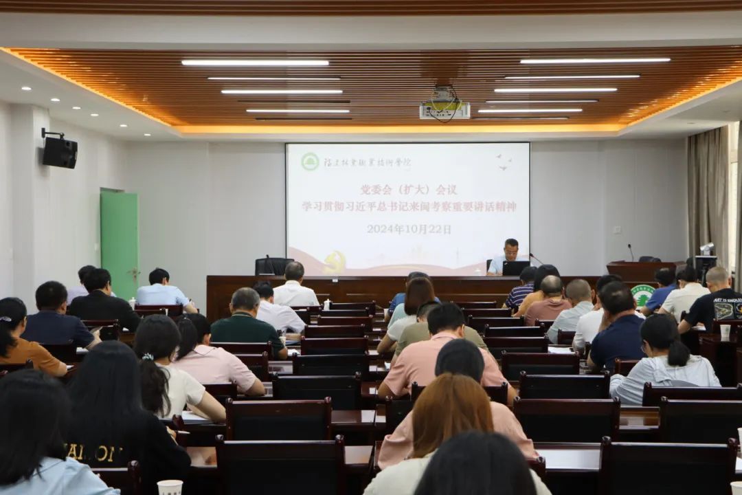 更新时间:2024/10/22 23:12本网讯 10月22日,院党委书记陈建辉主持召开院党委会(扩大)会议,专题传达学习习近平总书记在福建考察时重要讲话精神,并部署学院贯彻意见。院领导班子成员、各部门党政负责人、系党总支副书记、各系各部门宣传员参加会议。