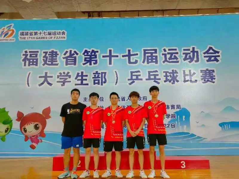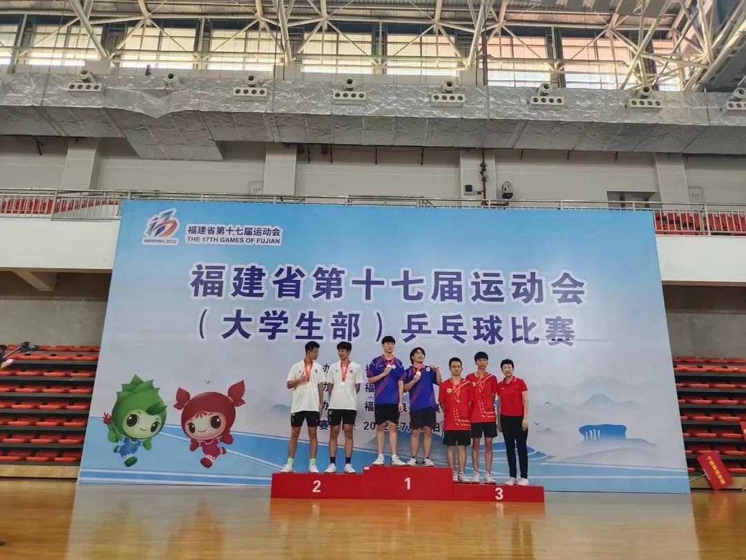 更新时间:2022/07/26 20:28本网讯 2022年7月17日至7月22日,福建省第十七届运动会(大学生部)丙组乒乓球比赛在泉州师范学院举行。在本次赛事中,我院学子奋勇争先、团结协作、顽强拼搏,经过几天的激烈角逐,荣获佳绩。