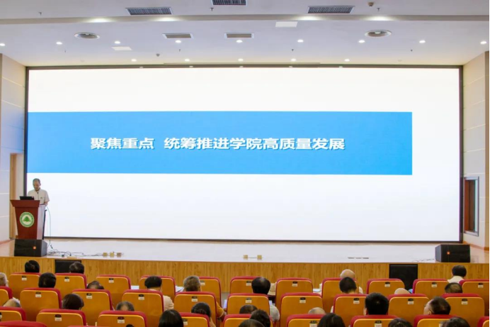 紧接着,院党委副书记、院长刘文开以《聚焦重点 统筹推进学院高质量发展》为题,对学院新学期工作提出新思路、新目标、新举措。刘文开院长首先对暑期仍然坚持在教学及工作岗位上辛勤工作的教职工表示感谢,随后对学院新学期工作进行了详细安排部署:一是要按年度党政工作要点推进学院各项工作。完成党委通过的学院年度工作要点是各部门特别是各部门党政负责人应履行的工作责任,要对标工作要点,制定强化措施,务求工作实效;二是要创造性推进福建省高水平院校建设。“双高计划”主题是高质量发展,主调是引领职业教育改革创新,学院要高标准定位、高水平设计、高效率实施、高效能产出、高质量发展;三是要做好新一届省级文明校园创建。文明校园是一个学校物质文明、政治文明和精神文明建设的最高荣誉,要严格按照创建要求和时间节点上传支撑材料;四是要落实落细校园安全稳定工作。坚决守住安全稳定底线,为学院可持续高质量发展提供基础保障。牢固树立安全发展理念,全面落实工作责任制,抓早抓小抓苗头,排查各种安全隐患,真正做到防患于未然;五是要认真抓好疫情防控,确保学院安全有序开学。疫情防控工作是当前的重大政治任务,要毫不放松抓好新冠肺炎疫情防控,统筹推进疫情防控和学院改革发展,落实好校园常态化疫情防控举措,压紧压实防控工作责任,确保师生员工健康安全;六是要明确学院“十四五”的办学定位与发展目标。“十四五”是学院构建新发展格局、全面开启新征程的第一个五年。学院“十四五”的办学定位是:服务生态文明建设、乡村振兴、中国制造2025等国家战略和新福建建设;发展目标是:以习近平总书记对福建工作提出的四个“更大”要求为指引,到2025年,办学条件总量指标达到本科层次职业学校设置标准,为提升办学层次奠定坚实基础。