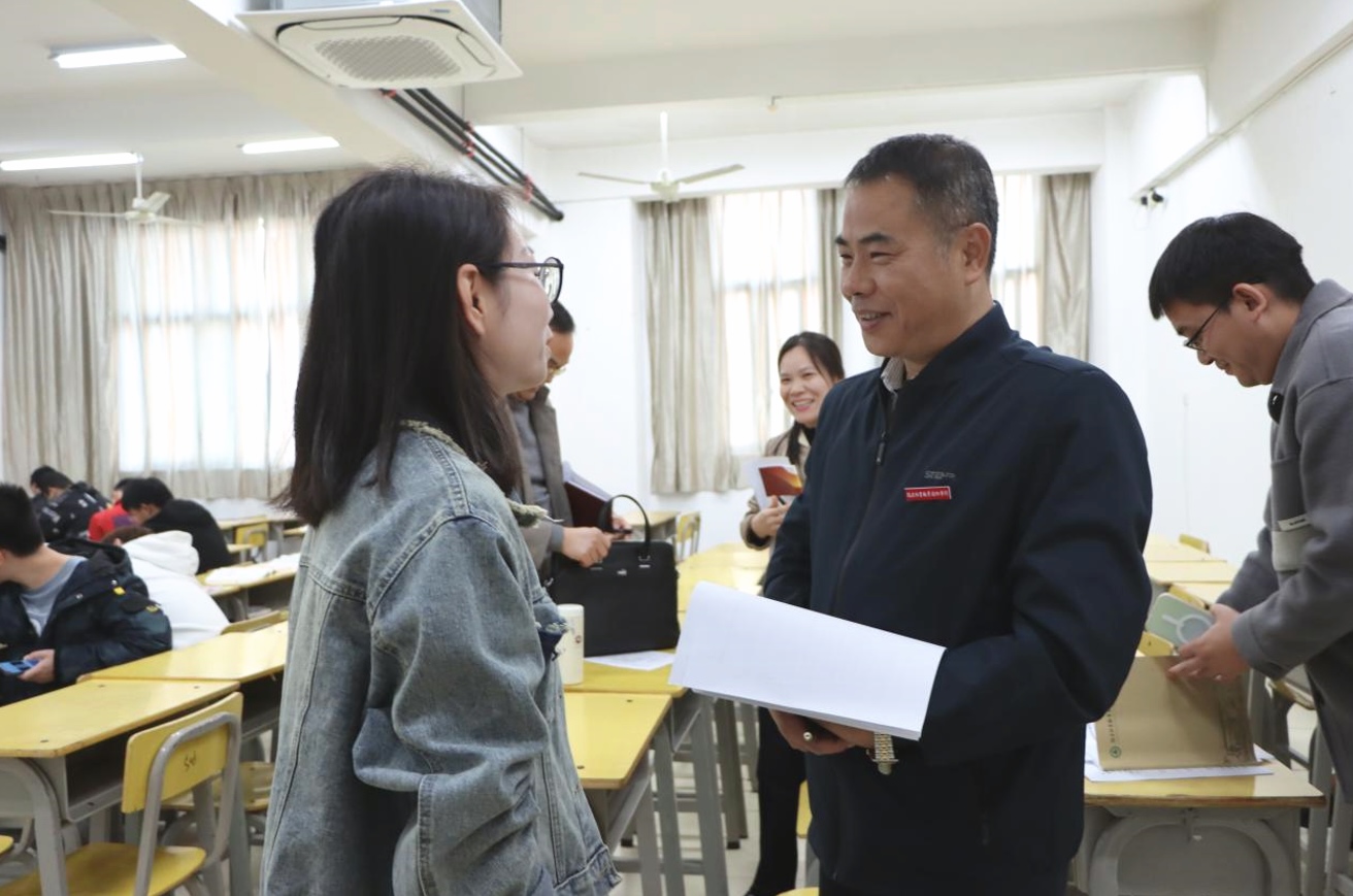 在江南校区教学楼510教室,陈建辉一行听取马克思主义学院朱丽云老师为汽车检测与维修技术(五)2101、2102班学生讲授的“毛泽东思想和中国特色社会主义理论体系概论”课。听课过程中,指导组认真记录教师的教学态度、教学内容、教学方法和教学效果,细心观察同学们的精神面貌和学习状态。