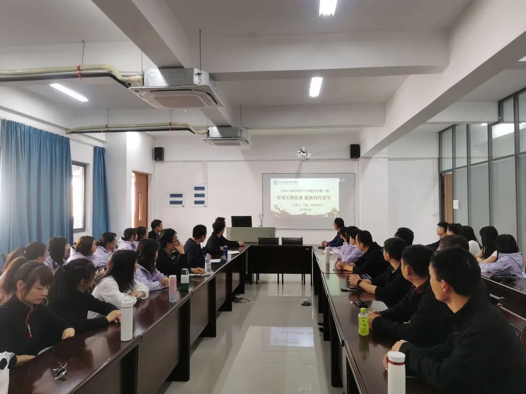讲座围绕“东方风来满眼春,党的二十大擘画新时代的教育蓝图”“自信自强守正创新,在职业教育的春天里勇毅前行”“春回大地万物复苏,疫情防控进入新阶段”“不负春光不负韶华,立志做新时代好青年”四个方面娓娓道来,讲述了那些动听的“春天的故事”,万名师生线上线下齐感受春暖花开、春潮澎湃。