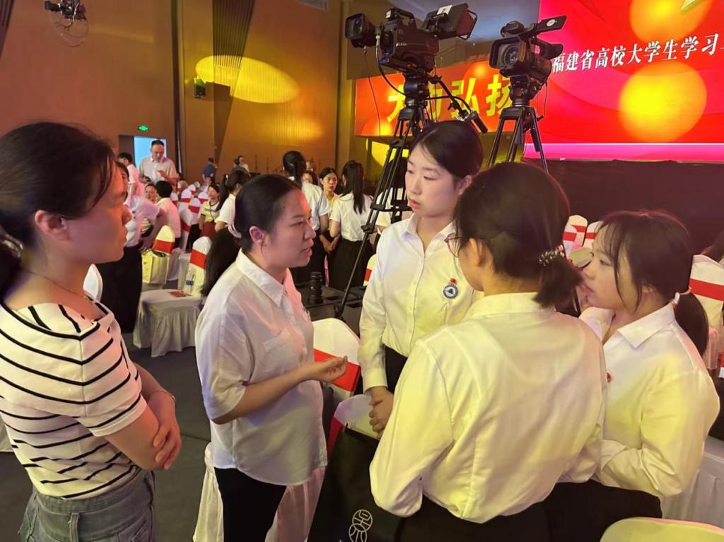 据悉,作为全国首档高校大学生学习马克思主义理论知识电视竞赛活动,“一‘马’当先”知识竞赛已经成为福建省高校思政教育的第二课堂和特色名片。在总决赛中,三位选手作为坚定的青年马克思主义者,展示了自己扎实且全面的理论素养和良好的精神风貌,用实际行动证明了自己。在谈及获奖感受时,她们一致表示,感谢集训以来学院领导、老师和同学们的用心指导与鼓励陪伴,更感谢“一‘马’当先”知识竞赛这个难得的平台。参与“一‘马’当先”知识竞赛的历程,不仅是一场知识的较量,更是一次心灵的洗礼和成长的飞跃,在备赛学习过程中深刻体会到马克思主义理论和习近平新时代中国特色社会主义思想的博大精深与时代价值,更加坚定了用中国特色社会主义理论指导实践、服务人民的信念和决心。