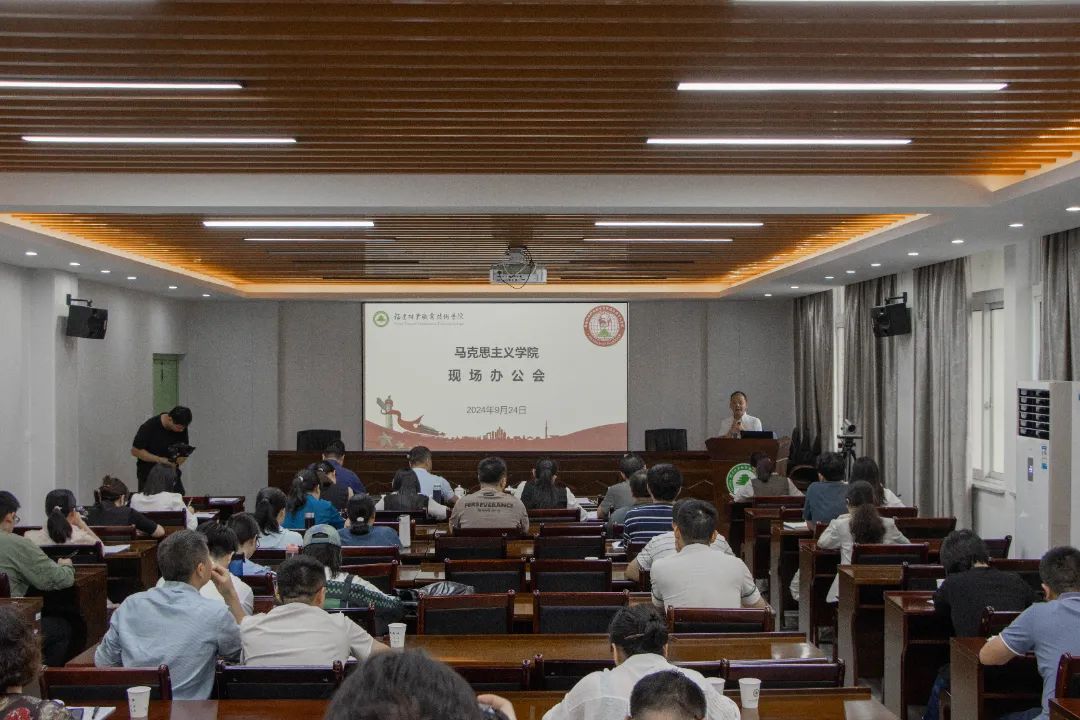 更新时间:2024/09/24 22:45本网讯 为深入学习贯彻党的二十届三中全会精神,积极推进全会精神融入思政课教学工作,确保全会精神第一时间入脑入心入行,9月24日,马克思主义学院在江南校区行政楼第四会议室召开“党的二十届三中全会精神融入思政课”暨“形势与政策”课集体备课会。学院党委书记陈建辉,党委副书记、院长刘文开,党委副书记严绍裕,副院长谢金生以及马克思主义学院全体专兼职思政课教师参加会议。会议由马克思主义学院院长邹小燕主持。