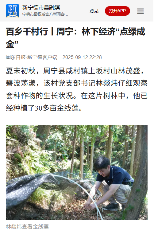 更新时间:2025/09/12 23:18百乡千村行 | 周宁:林下经济“点绿成金”