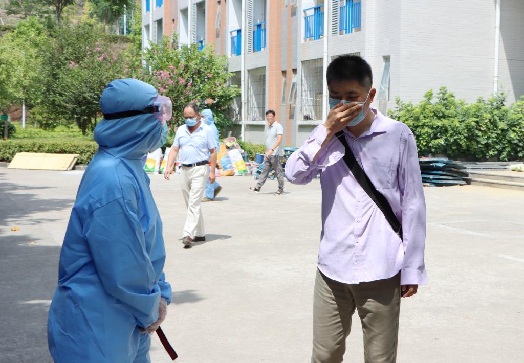 ▲发现体温异常学生,引导至临时留观点进行体温复测、安抚登记