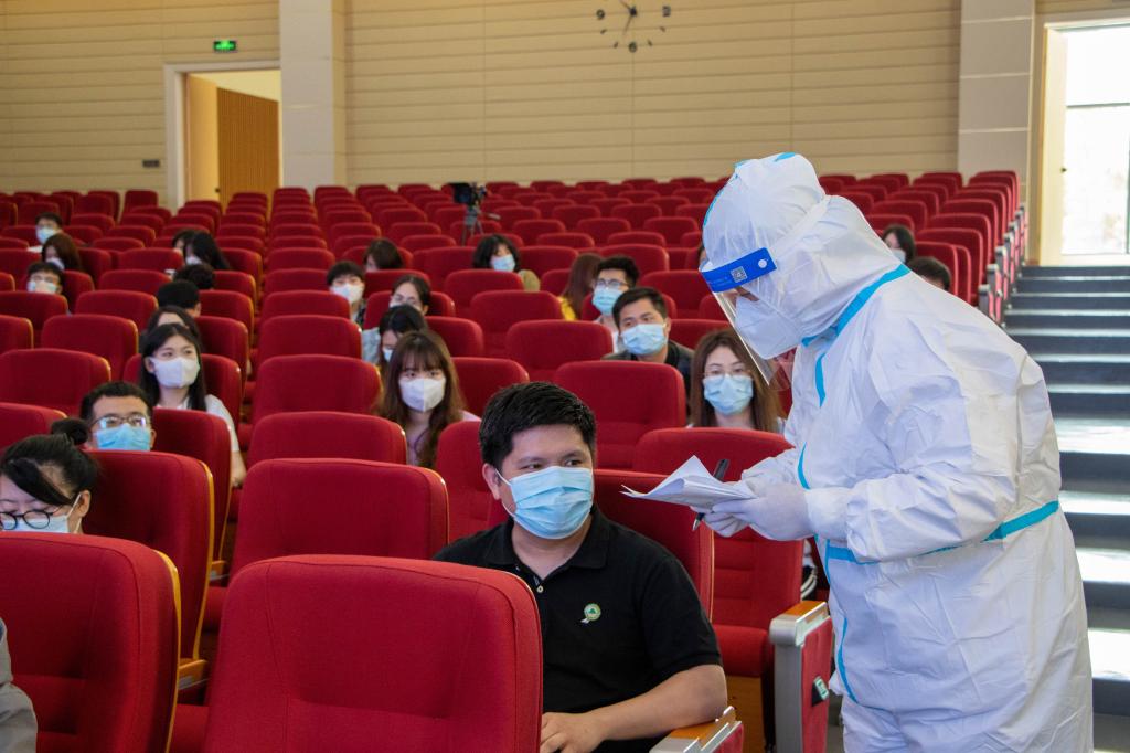 演练主要包括不同场景下发现新冠肺炎疑似病例、体温异常者、密接、包裹核酸检测阳性等应急处置内容,分别在报告厅、学校大门口、图书馆等设置演练场景。