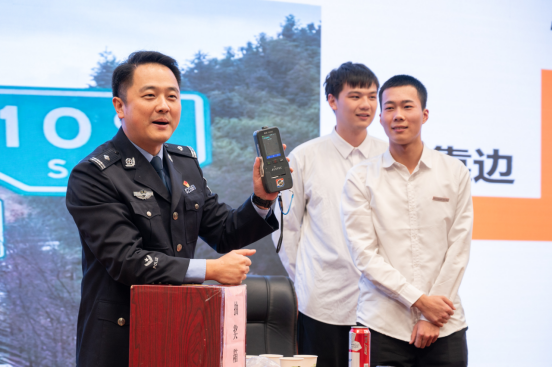 最后,南平高速交警支队一大队翁洋溢警官为现场师生带来了一场幽默、生动的交通安全主题讲座,为大家讲解了高速遇险“十二字警句”以及交通安全相关法律法规和常识,并通过现场有奖互动问答的方式,引导学生积极思考,加深认识。