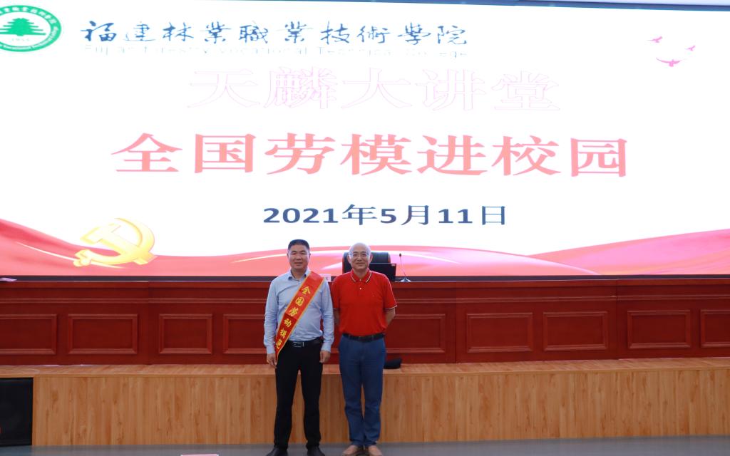 本网讯 时值五月,既是劳动人民的节日,又是国家“职业教育活动周”和学院一年一度的“技能活动月”,为贯彻落实习近平总书记在“五一”国际劳动节上发表重要讲话精神和习近平总书记对职业教育工作作出重要指示精神,深入开展“劳模进校园”活动,丰富党史学习教育形式,高质量开展党史学习教育,5月11日下午,学院特邀2020年全国劳动模范、福建省劳动模范、福建省优秀人才、福建省优秀共产党员、全国科普惠农兴村带头人、第八届全国青年农民创业致富带头人、德化黑鸡产业领头人刘志军走进学院“天麟大讲堂”,为师生作《因为热爱 所以坚持》的主题报告,与师生们零距离接触,让大家更加直观、深入地领会新时代劳模精神。
