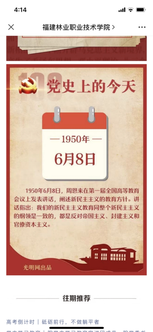 组织实施迎接建党100周年“百年行动”,开展“学习?诊断?建设”行动,召开党支部书记学习培训交流会,交流学习党支部建设的经验做法,全面推动基层党组织全面进步全面过硬、党建质量全面创优全面提升。结合闽北地方特色、高职教育特点和林业发展趋势,依托学院“天麟大讲堂”,开展朱子文化进校园、劳模进校园、林业科普进校园等活动,丰富党史学习教育内容。举办“奋斗百年路 启航新征程”校园微拍大赛、喜迎建党100周年暨纪念五四运动文艺晚会、校园红歌班班唱等活动,组织创作一批党史题材的文艺作品,充分展示中国共产党百年光辉历程和伟大功绩,其中林职版MV《少年》唱给党听,在校内外广泛传播,得到广大师生和兄弟院校的一致好评。把党史知识融入校园文化活动中,组织开展“庆祝中国共产党成立100周年”党史知识竞赛、硬笔书法大赛、优秀党史题材电影进校园和《唱支山歌给党听》歌曲快闪等活动。