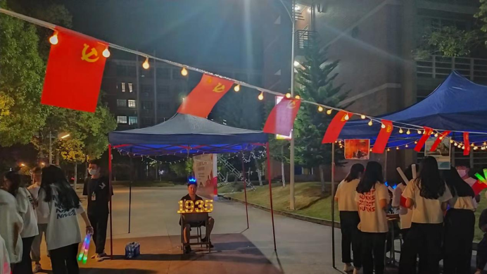 随着院党委书记万泉宣布千人荧光夜跑活动正式开始,“学精神谱系,做时代新人”千人荧光夜跑活动拉开帷幕。师生挥舞着荧光棒,点点荧光化作巨龙,跟随着五星红旗的步伐,在校园内肆意腾飞,意旨中国共产党从“星星之火”到“燎原之势”。