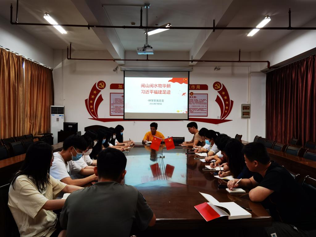 2022年7月1日,后勤管理处党支部积极发挥党员领导干部示范领学作用,由支部书记讲专题党课,带领全体党员学习《闽山闽水物华新——习近平福建足迹》一书,从理论源头和实践起点学深悟透习近平新时代中国特色社会主义思想。