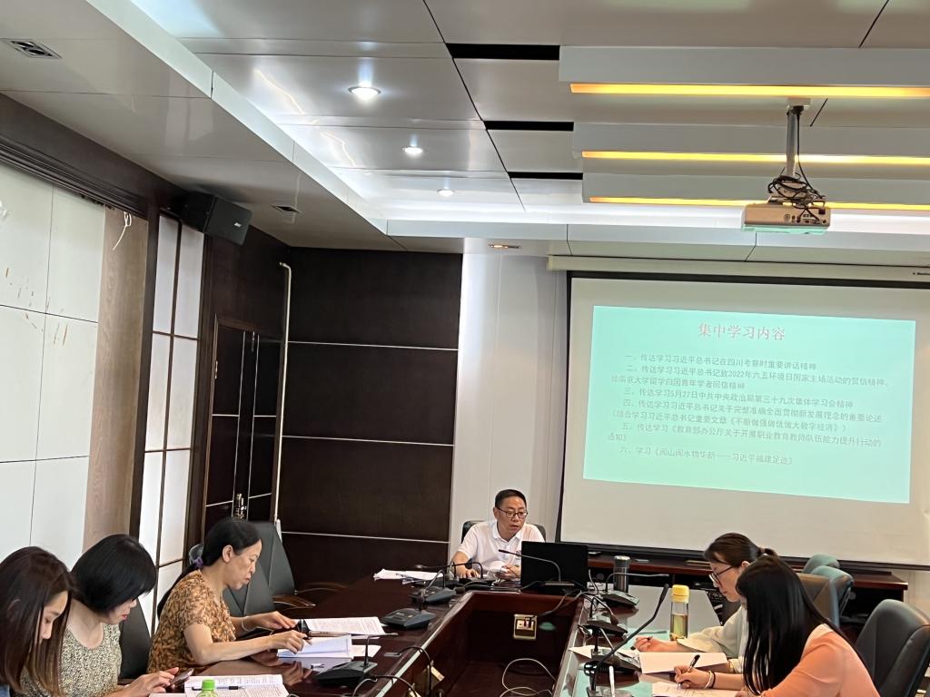 2022年7月14日,宣传部党支部召开《闽山闽水物华新--习近平福建足迹》学习分享会,会议由党支部书记邹小燕主持。
